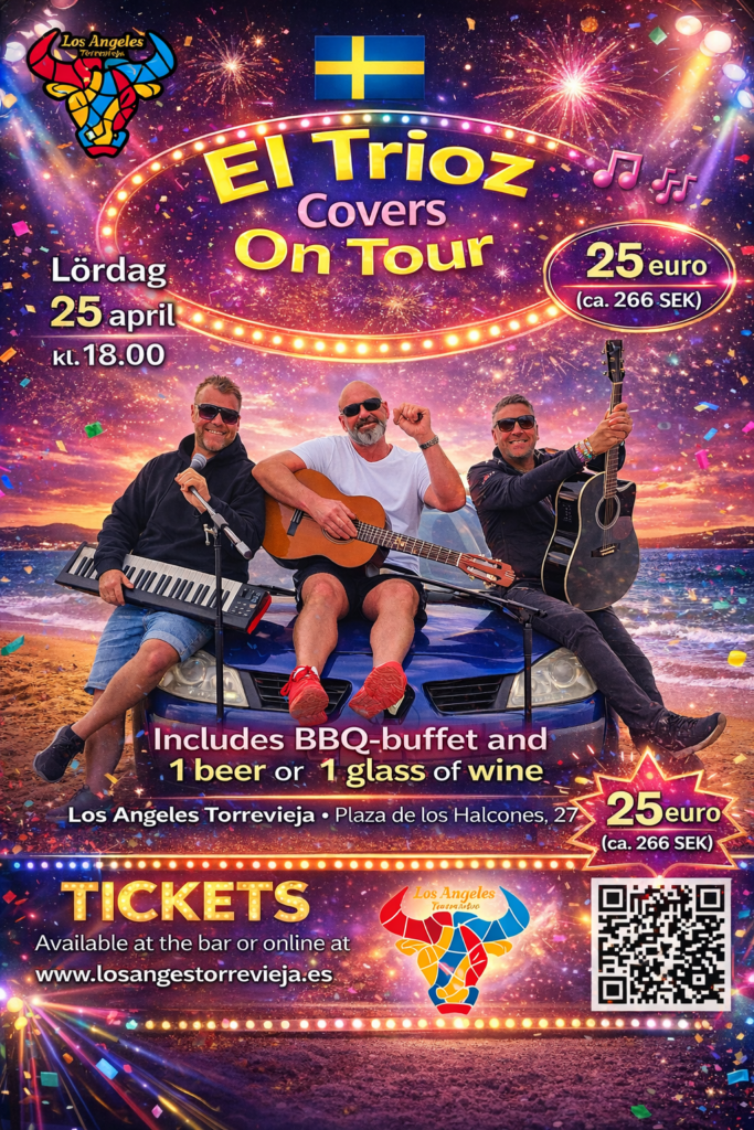 🌞 Live music, good food & great vibes! Join us for an unforgettable evening with El Trio, bringing you the best cover songs in a relaxed, sunny atmosphere. 📅 Saturday 25 April⏰ 18:00📍 Los Angeles TorreviejaPlaza de los Halcones 27 🍖 BBQ buffet included🍺 1 beer or 1 glass of wine included Good music, tasty food, cold drinks and holiday vibes — what more do you need? 🎸🎤Come early, bring friends, and let’s enjoy the night together!